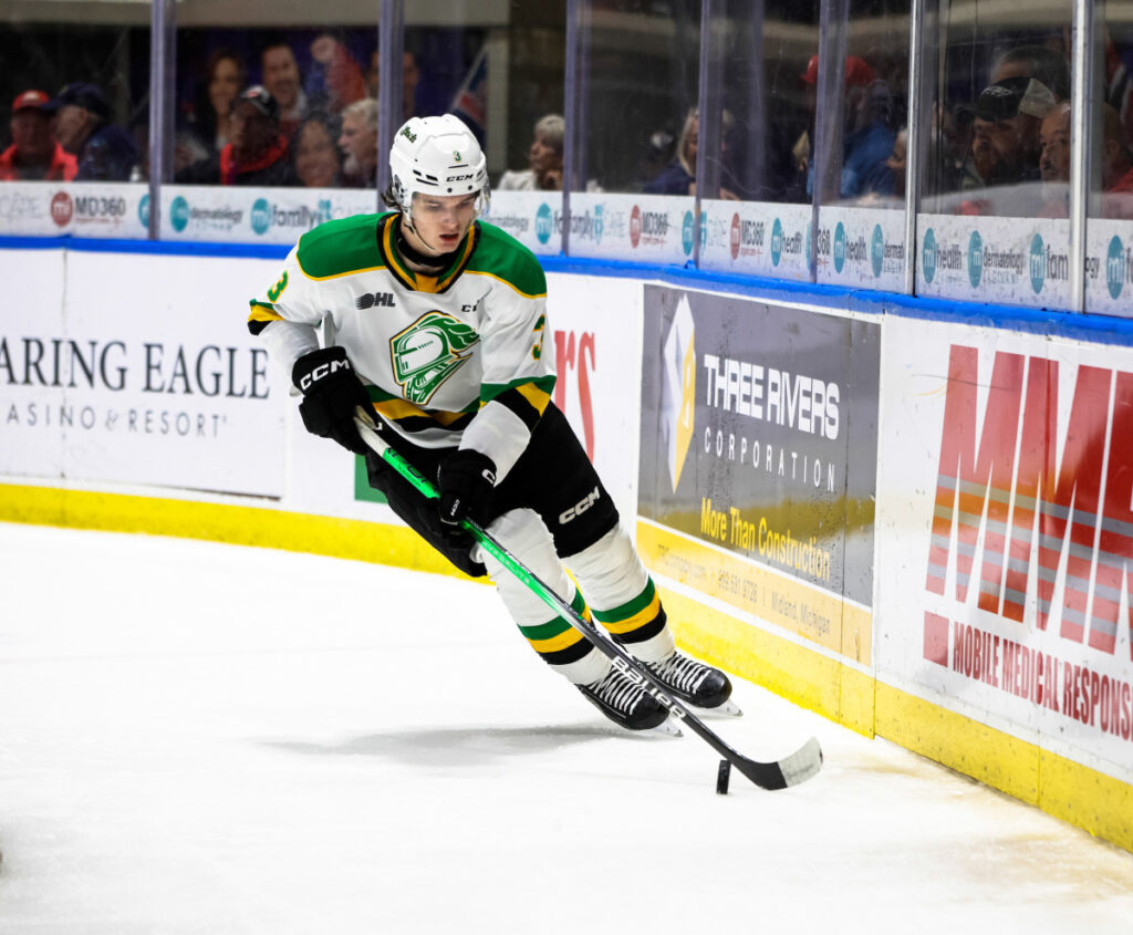 2024 Draft, Defence, Home Page, Sam DickinsonSam Dickinson vs Kitchener | Jan 30 2024 prospectshifts.net / April 30, 2024